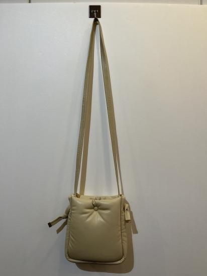 クッションのようなボリュームと柔らかさのある中綿入りスモールショルダーバッグ。