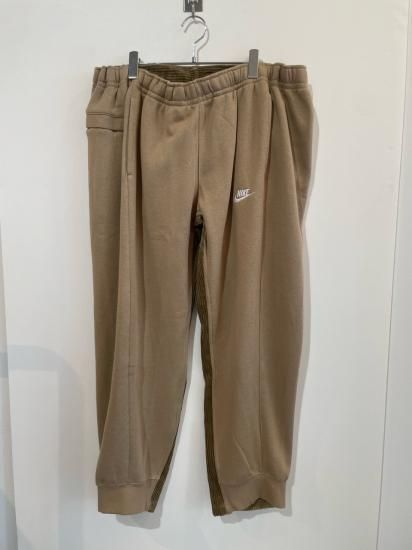 ナイキのジョグパンツとコーデュロイパンツをリメイクして作られています。
