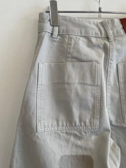 デニム素材を使ったクロップド丈のワイドパンツです。