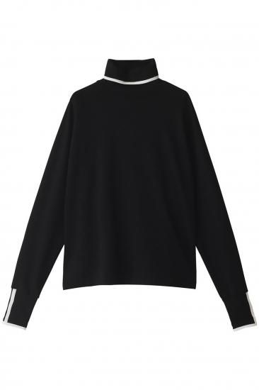 衿端と袖口をニットバインダーで処理した配色デザインが特徴のタートルネックトップス。厚みのある生地感にゆとりあるシルエットを付与することで、抜群の着心地を表現しています。特殊なジャガード機で編むことで生地が伸び辛く、体のラインをきれいに見せる保形性に優れたオリジナル素材です。滑らかな質感と光沢感で、カットソーとは思えない高級感を纏った一枚。単体での着用はもちろん、インナーとしても幅広く着用いただけます。裾は両脇後ろ側のみゴム仕様で後身頃がブラウジングされ丸みのあるシルエットを形成しています。