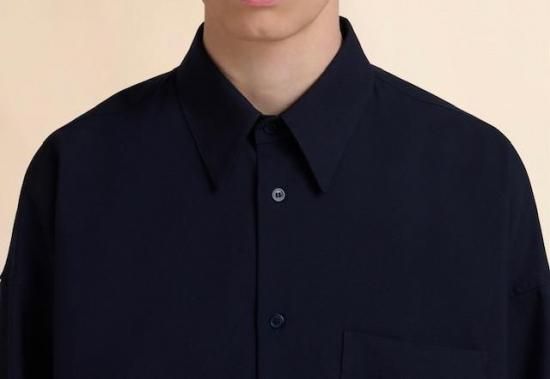 ボクシーフィット、胸ポケット、バックの首元にマルニラベル。