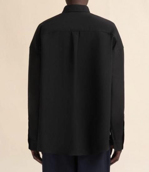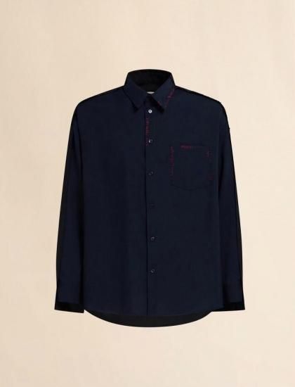 ディープブルートロピカルウール製シャツ、コントラストバック。