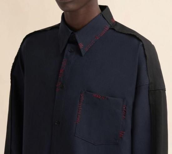 フロントに手刺繍によるマルニシンボルとステッチ入り。