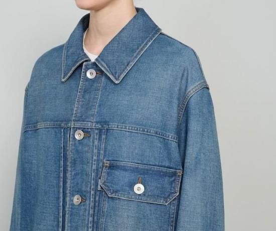 コットン素材のオリジナルレフトハンドデニムを使用したジーンジャケットです。デニムを糸の撚りと同じ方向の左綾で織り上げることで、表面がフラットになり、光沢感としなやかな風合いを併せもつ今までにないデニムジャケットに仕上げています。ファーストタイプをベースにレザーパッチと左胸のみに大きく設けられたフラップポケットがデザインの特徴です。全体的にゆとりを持たせた現代的なパターン設計で、身頃はシェイプがなくストレートに落ちるシルエットです。緻密に計算されたドロップショルダーは、重力に対しまっすぐに落ち、アームホールとバストの抱きを美しく見せるTHE RERACS独自の設計となっています。袖丈は長めの設定で、袖口のタックによりボリュームが出る仕様。フロントはシルバーのタックボタンを使用。また、前身頃をストレートなボックスシルエットにすることで、様々なスタイリングが可能なジーンジャケットに仕上げています。