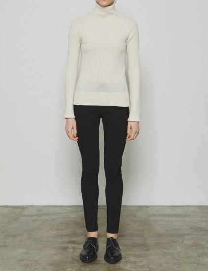 カシミヤ/ウールのブレンド糸を使用したタートルネックプルオーバーニット。タートルネックとラグランスリーブ、あえて長めに設計したボリュームのある袖口が最高のバランスを持ち、体のラインをより美しく演出する一枚。リブの太さを身頃と袖で変化させることでそれぞれの機能に適した仕様で着心地良く、更に裾の切り替え部分に厚みを持たせたリブを配置することで全体に立体性を与えすっきりとした印象に。程良く厚みのある編立てとカシミヤ、ウールの混紡糸で仕立てることで非常に滑らかでありながらしっかり保温性のある双方のメリットを併せ持つ寒い季節には欠かせないニットです。