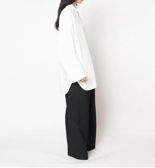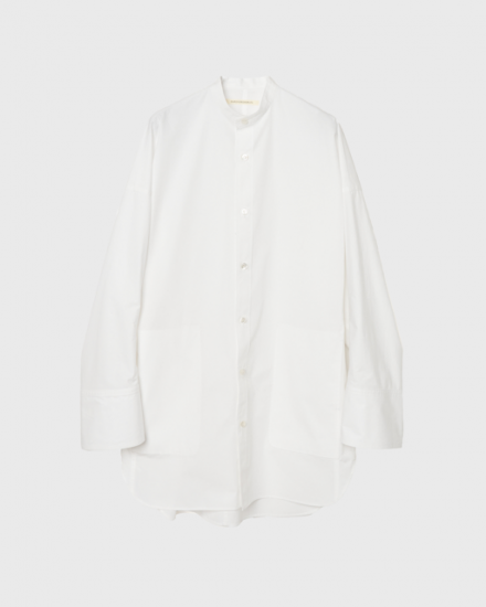 スタンドカラーのオーバーサイズシャツ。