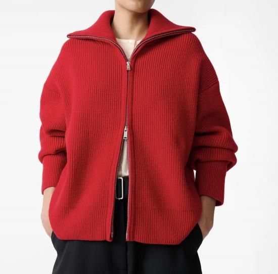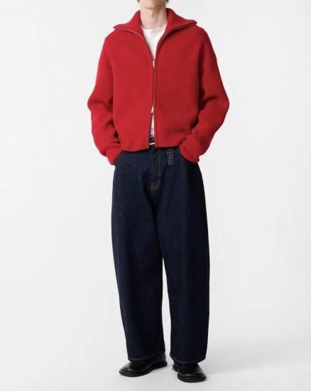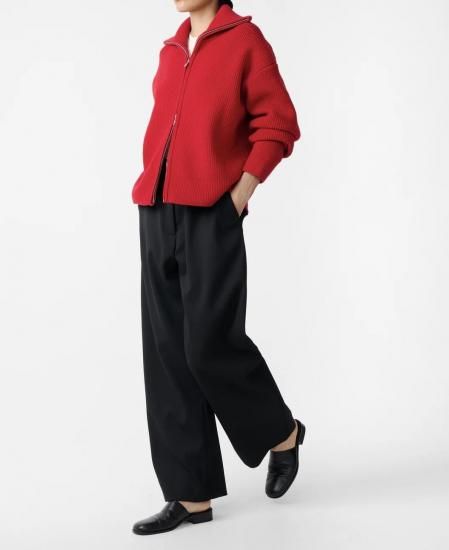 STUDIO NICHOLSON SANDOS KNITWEAR RIB THOUGH JUMPER (CRIMSON)