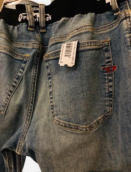 ストレッチデニムを使用したタイトめのデニムパンツ、ディーゼル社のデニムを使用。